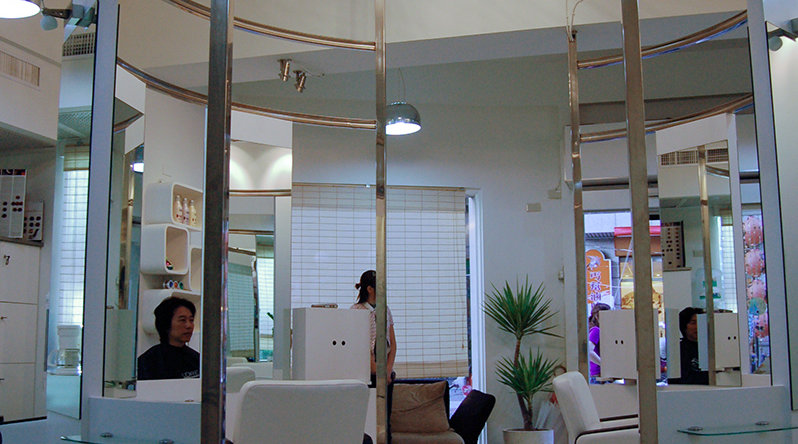 大山作品:伍. 室內設計:商業空間、店面 案名:KiLaLa美髮沙龍 室內設計案 設計說明:這個小品案,我至今還是很喜歡,簡單的不鏽鋼弧形框架,成為空間主角,手法簡潔利落。