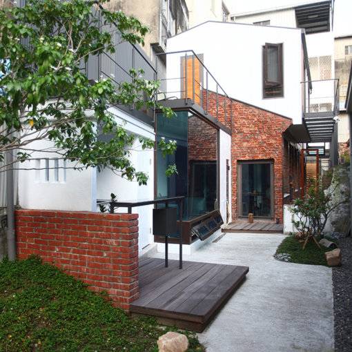 我們花了很多時間研究原來的細節,並想辦法重新呈現出來。這棟房子分成左右棟,左棟有三間套房、右棟則是整棟的小住宅格局。兩棟的入口玄關、小起居室與客廳三者相連。我們以原來的木窗妝點了隔牆,清爽的空間設計,其實只是以原建築空間該有的風貌重新詮釋而已。右棟獨棟住宅,我們刻意把後庭的開口加大,並新增了現代化的小廚房與廁所,圍繞著後庭空間,成為家重要的中心。