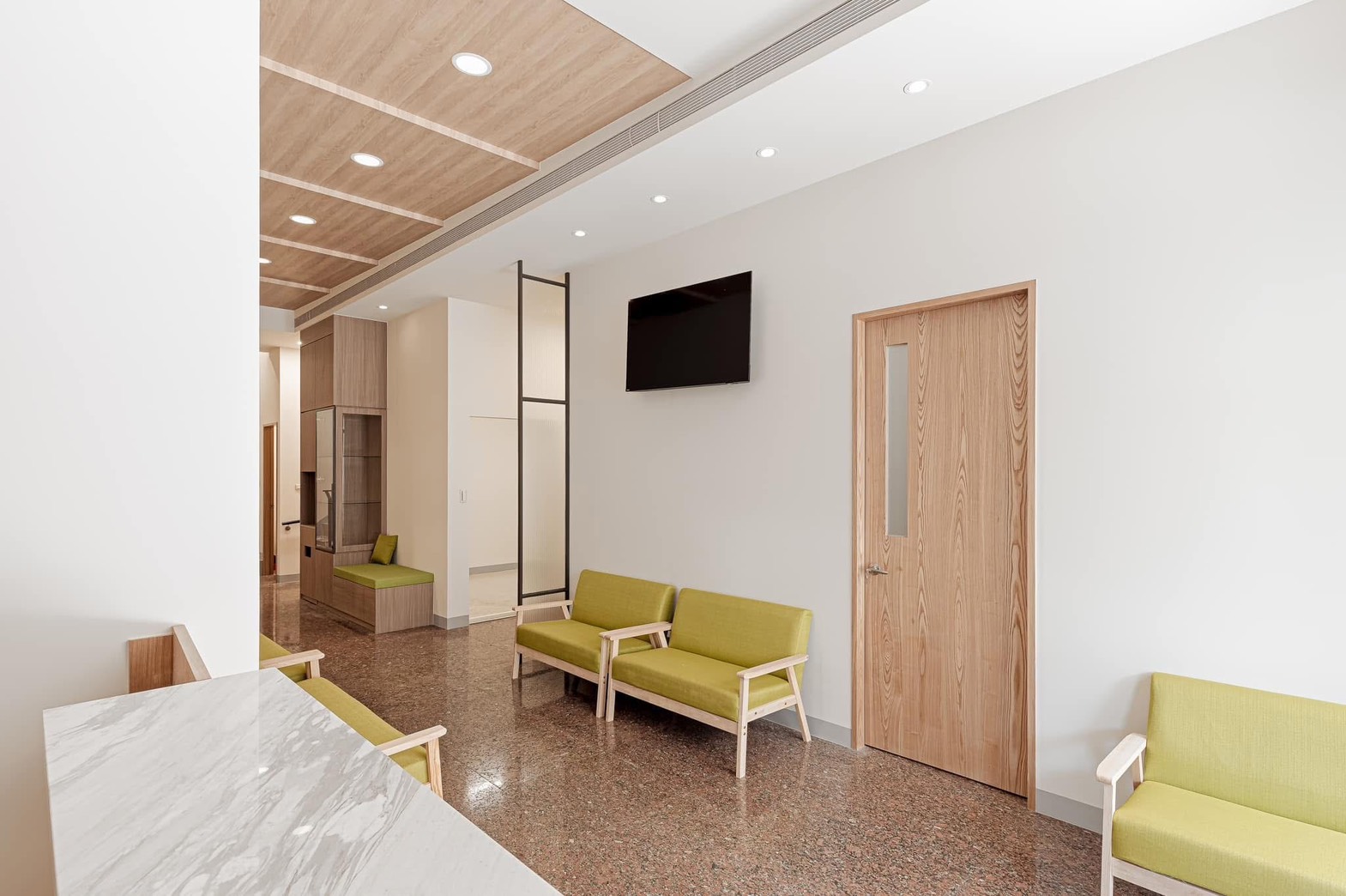 此外,候診區的傢俱選用經過人體工學的精心考量,特別注重舒適性,以減輕長期病患或久坐者的負擔。整體環境透過木質、自然光與簡潔線條的運用,共同散發出一種沉穩而優雅的氛圍。