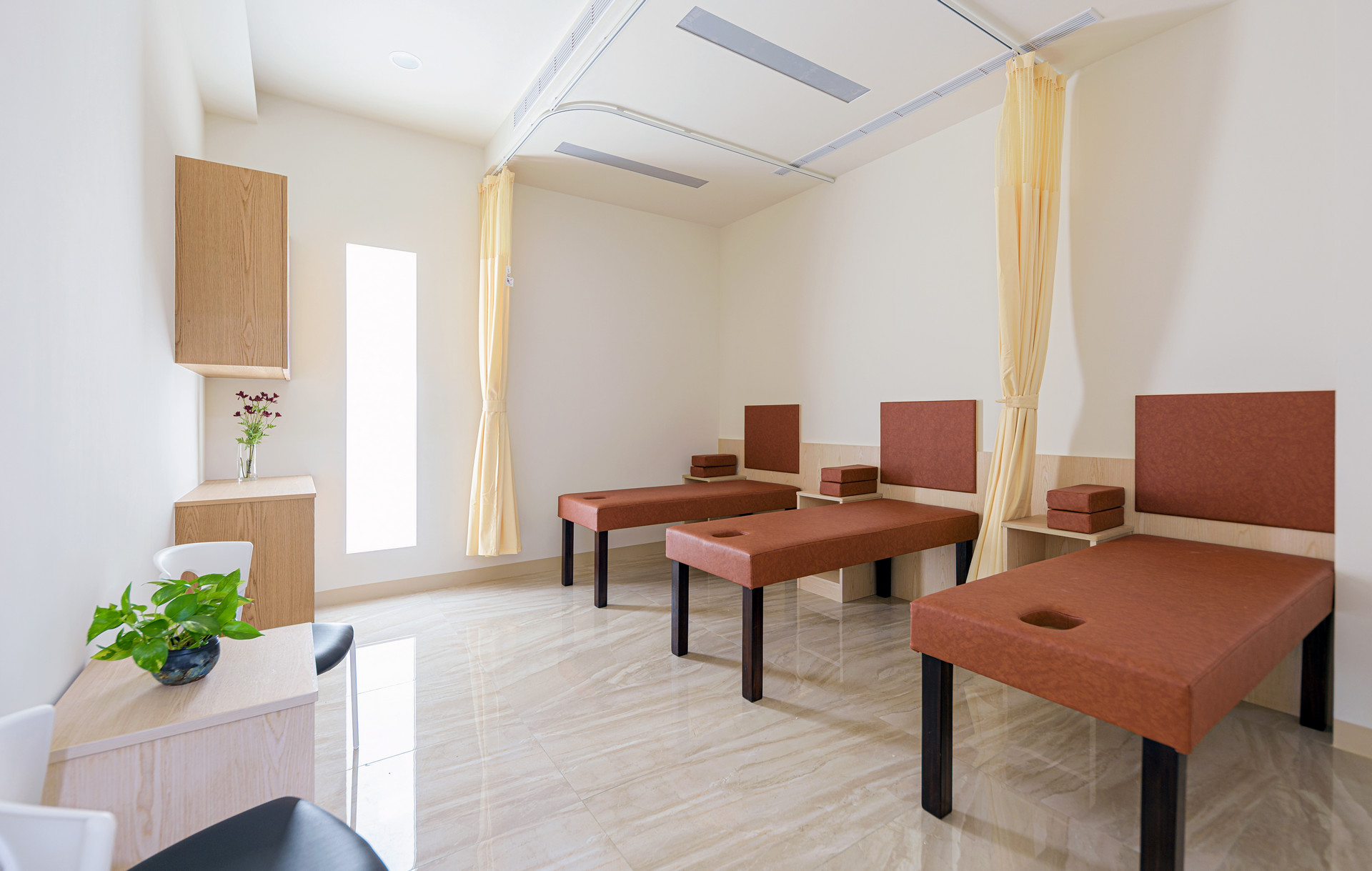 雖然外牆設計強調遮陽與隔熱,但室內依然注重引入自然採光。透過精心的開窗位置與設計,光線被柔和地引入室內,減少對人工照明的依賴,提升視覺舒適度。合理的平面佈局也有助於空氣自然對流,確保室內空氣的流動性,進一步優化病患的就診體驗。