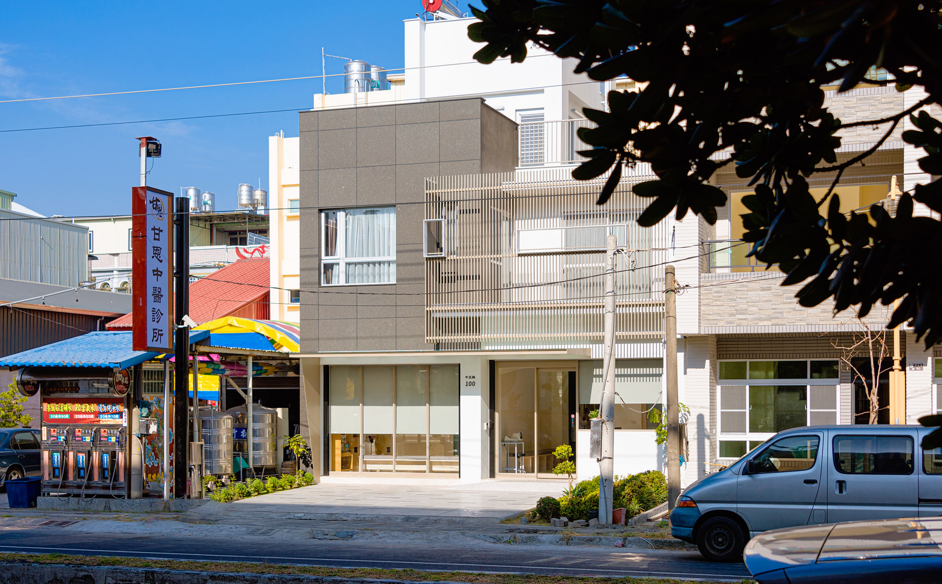甘恩中醫診所坐落於高雄梓官區中正路,大山從建築設計一路做到室內設計,也包含建築營造工程及室內裝修工程。面對著南部炙熱且開闊的道路環境,這座建築設計不僅是對醫療空間機能的滿足,更是對亞熱帶氣候、環境友善的永續建築的深度回應。我們的設計團隊將基地視為一個微氣候調節器,透過一系列策略性的規劃,包括深思熟慮的通風採光佈局、精準的遮陽系統,以及高效的隔熱處理,為醫病雙方創造一個健康、舒適且節能的診所空間。這篇文章旨在細膩地論述,我們的建築師與室內設計師如何從都市尺度到內部裝修細節,層層遞進地實現「與氣候環境對話」的設計理念。