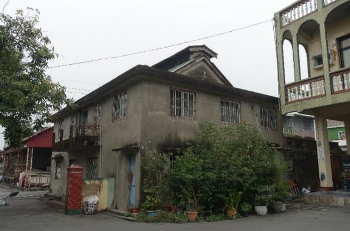 建物外牆為水泥粉光,內牆天花以白色油漆粉刷,壁面則貼設磁磚。開口部方面,建物東、西和南向立面皆設有橫拉雙開採光鋁窗,門扇則使用木作門扇(圖 3‑74)。地坪方面,一二樓皆鋪設馬賽克磁磚,有細小的方形與、幾何圖案拼花以及大面方形磁磚三種型式(圖 3‑75)。