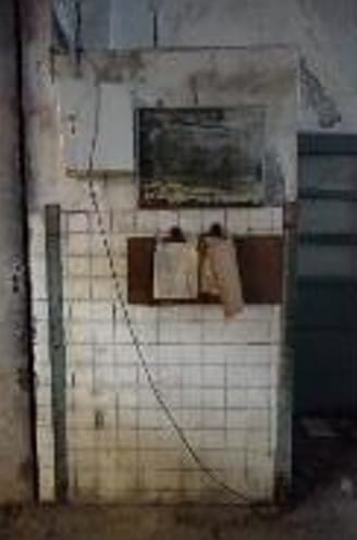 | 圖 3‑74 鍋爐室旁廁所鋁窗與木門扇 | 圖 3‑75 浴室馬賽克拼花磁磚 |