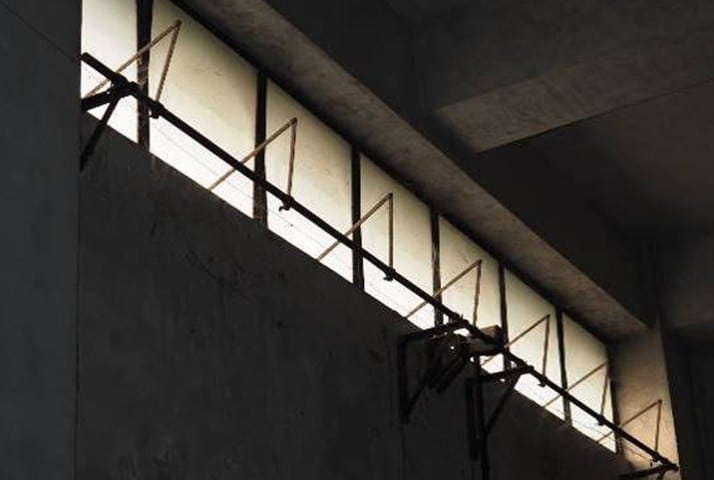 鍋爐室牆體為加強磚造,因結構考量由下往上逐層縮減牆體厚度,形成兩道分割線,從南北向立面觀之則具有比例分割的效果,東西向立面可能因為戰後修建而將分割填平;而外牆粉刷材質方面,依據和本案性質相同的台中菸葉廠現存的日治時期鍋爐室,以及當代慣用作法,判斷屏東菸業廠鍋爐室原設計之基腳(圖 3‑3)可能為灰色洗石子,基腳以上牆面則為水泥粉光。開口部方面,鍋爐室原裝木窗扇經歷多年使用已全數更換為現代鋁窗;另外,和太子樓同樣基於室內物理環境控制考量,建物設有上下排氣窗和採光窗,供通風換氣和採光之用。